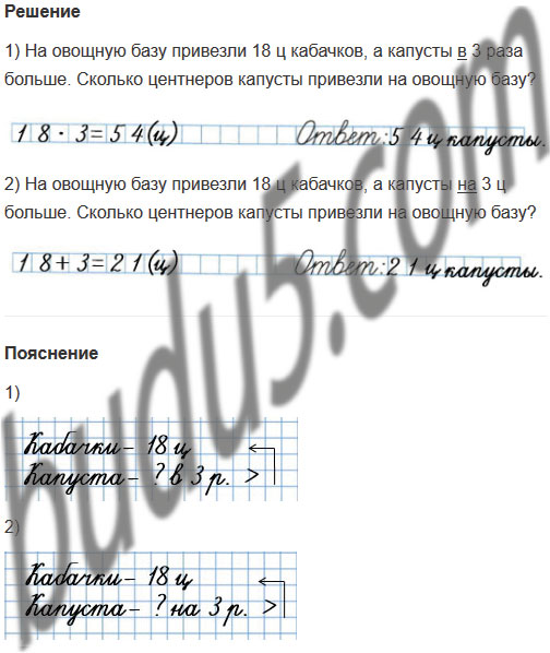 2) На овощную базу привезли 18 ц кабачков, а капусты на 3 ц больше. Сколько центнеров капусты привезли на овощную базу?